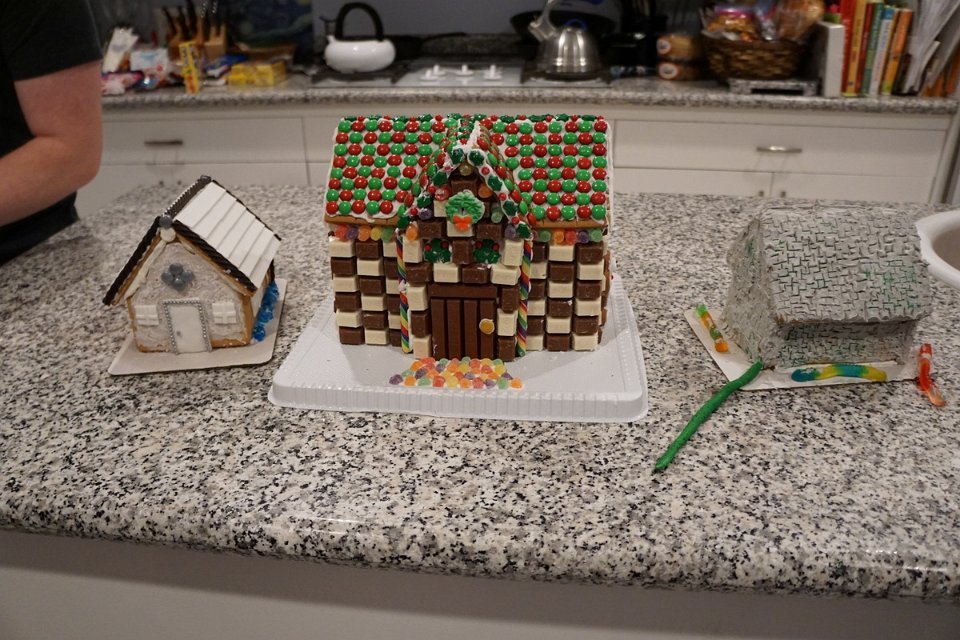 9 The 2017 Annual Gingerbread House Competition - Kim and Ron made and ice castle; Spencer and Mona made a mansion; Sean, Scot and Rachel made the borg.