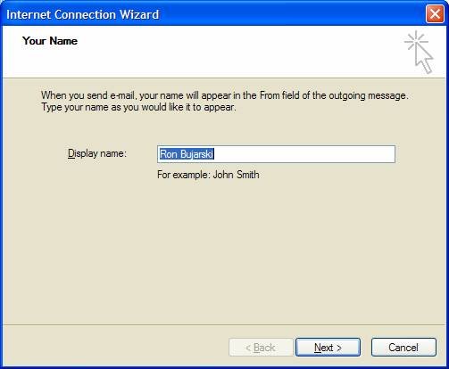 Enter the name you would like your outgoing e-mails to be labeled with. Then select Next.