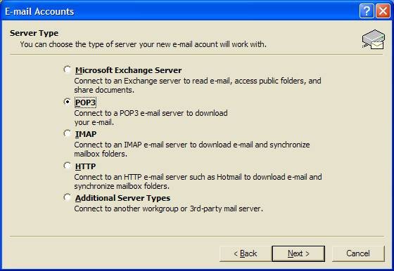 Select “POP3” and then choose Next.