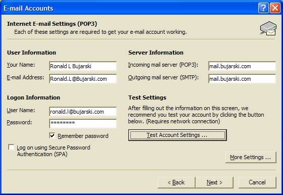 Once you have your e-mail address and password, you can access your Bujarski.com e-mails either by going online to http://mail.bujarski.com or by adding your new e-mail address to Outlook or Outlook Express. Basic instructions for Outlook Express and then Outlook are shown below: